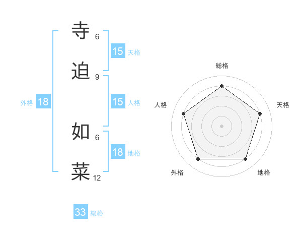 寺迫 如菜さんの天格は15画の4点!