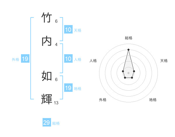 竹内 如輝さんを姓名の画数から五運を鑑定