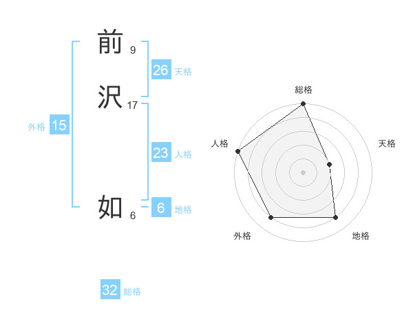 前沢 如さんの外格は15画の4点!