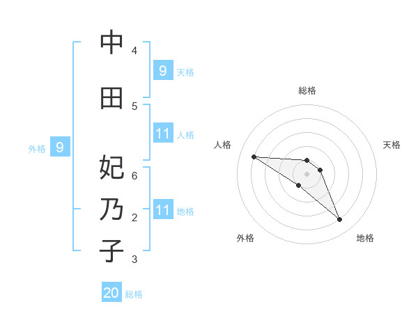 中田 妃乃子さんを姓名の画数から五運を鑑定