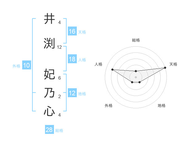 井渕 妃乃心さんの総格は28画の1点!