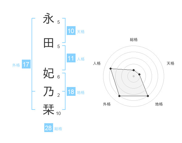 永田 妃乃栞さんの地格は18画の4点!