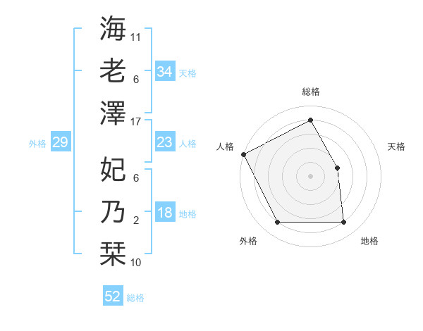 海老澤 妃乃栞さんを姓名の画数から五運を鑑定