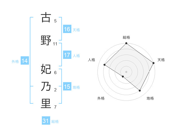 古野 妃乃里さんを姓名の画数から五運を鑑定