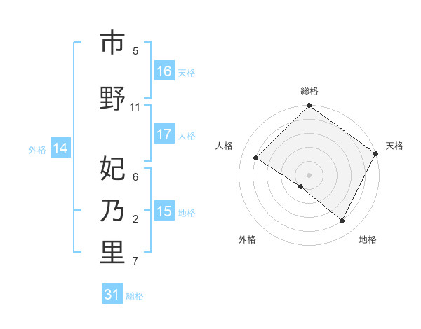 市野 妃乃里さんを姓名の画数から五運を鑑定