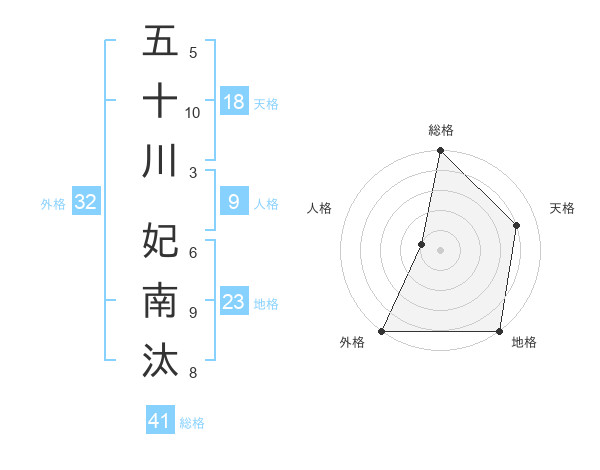 五十川 妃南汰さんの外格は32画の5点!