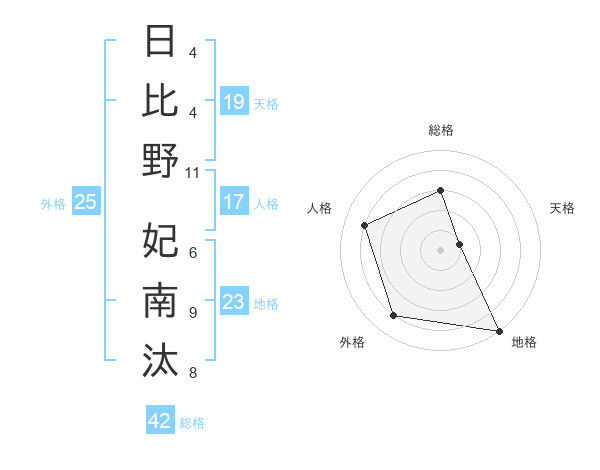 日比野 妃南汰さんの外格は25画の4点!