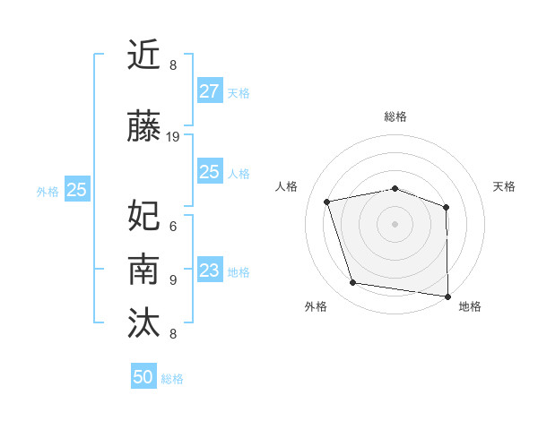 近藤 妃南汰さんの総格は50画の2点