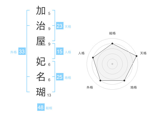 加治屋 妃名瑚さんの総格は48画の4点