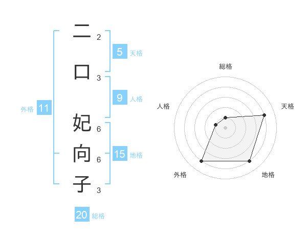 二口 妃向子さんを姓名の画数から五運を鑑定