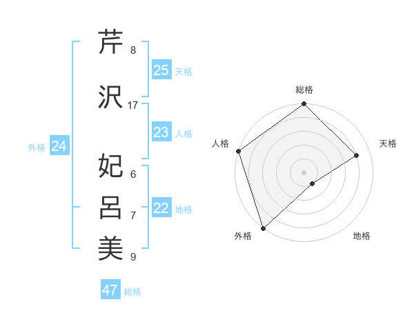芹沢 妃呂美さんを姓名の画数から五運を鑑定