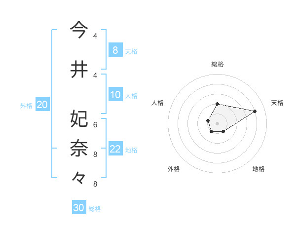今井 妃奈々さんを姓名の画数から五運を鑑定