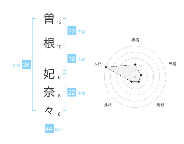 曽根 妃奈々さんを姓名の画数から五運を鑑定