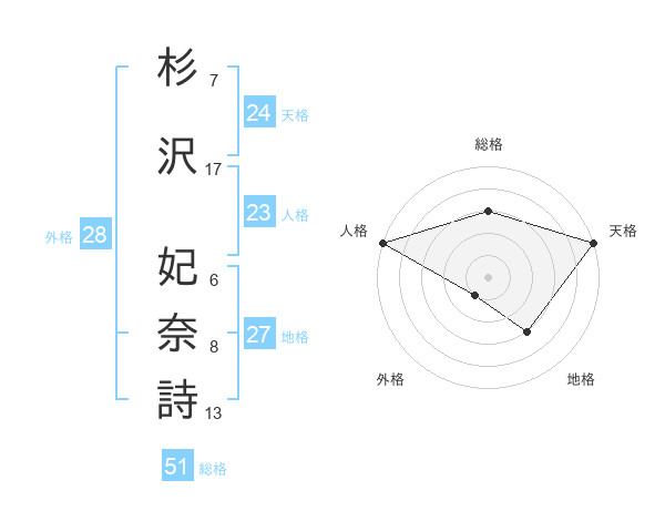 杉沢 妃奈詩さんの総格は51画の3点!
