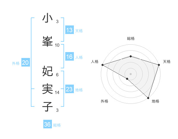 小峯 妃実子さんを姓名の画数から五運を鑑定