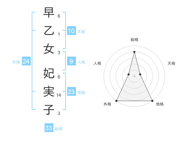 早乙女 妃実子さんを姓名の画数から五運を鑑定