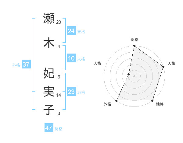 瀬木 妃実子さんを姓名の画数から五運を鑑定