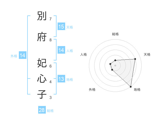 別府 妃心子さんを姓名の画数から五運を鑑定