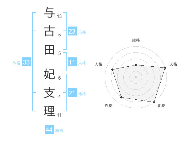 与古田 妃支理さんを姓名の画数から五運を鑑定