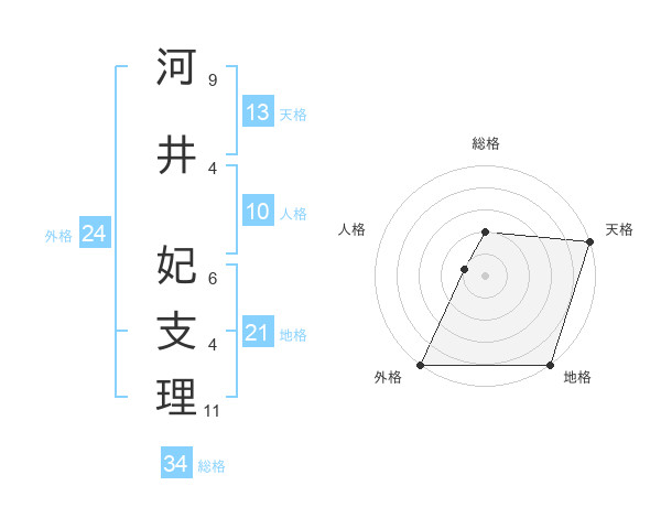 河井 妃支理さんを姓名の画数から五運を鑑定
