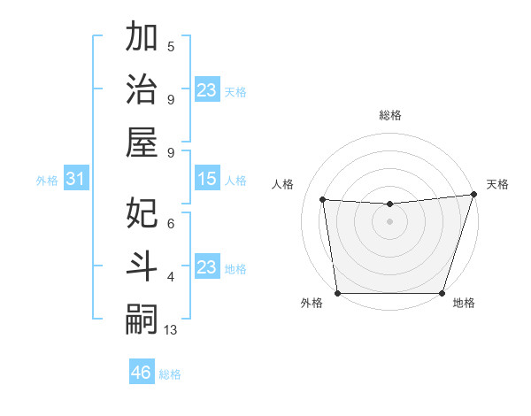 加治屋 妃斗嗣さんを姓名の画数から五運を鑑定