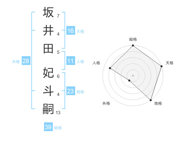 坂井田 妃斗嗣さんの総格は39画の5点!