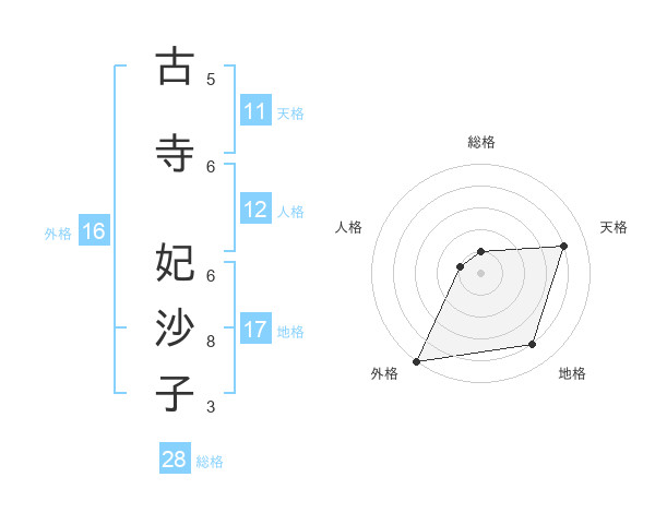 古寺 妃沙子さんを姓名の画数から五運を鑑定