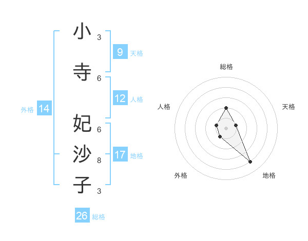 小寺 妃沙子さんを姓名の画数から五運を鑑定