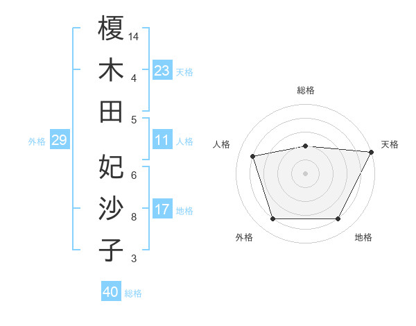 榎木田 妃沙子さんの天格は23画の5点!