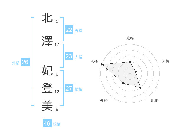 北澤 妃登美さんの総格は49画の2点!