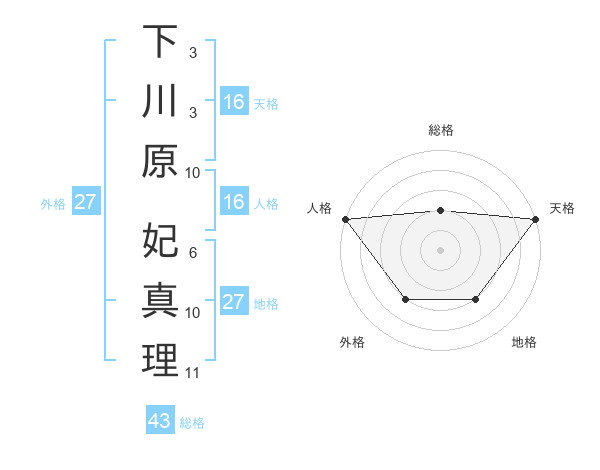 下川原 妃真理さんの天格は16画の5点!