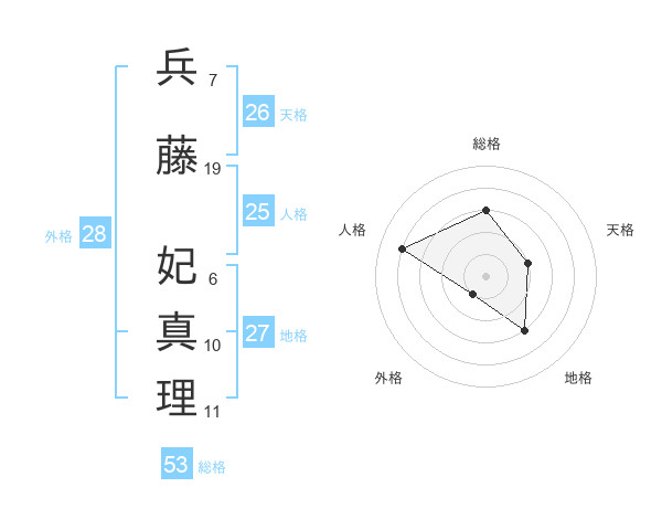 兵藤 妃真理さんを姓名の画数から五運を鑑定