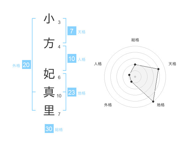 小方 妃真里さんを姓名の画数から五運を鑑定