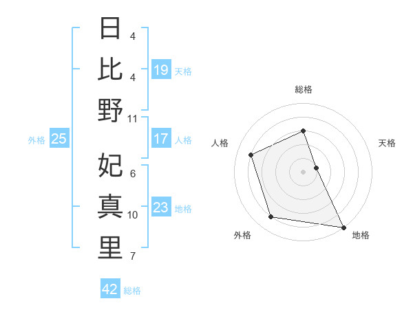 日比野 妃真里さんを姓名の画数から五運を鑑定