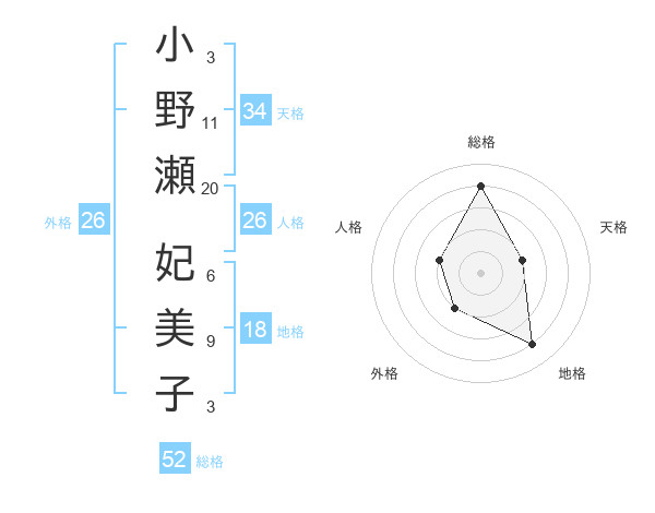 小野瀬 妃美子さんを姓名の画数から五運を鑑定