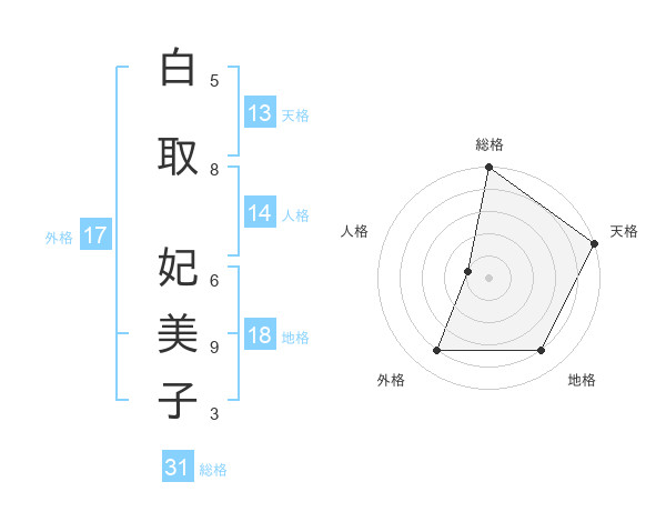 白取 妃美子さんを姓名の画数から五運を鑑定