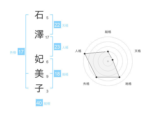 石澤 妃美子さんを姓名の画数から五運を鑑定