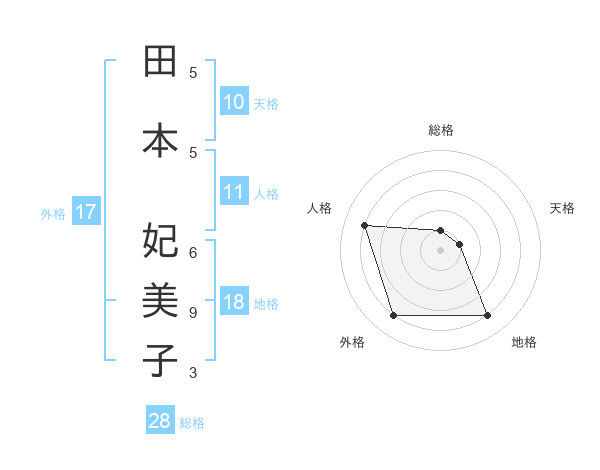 田本 妃美子さんを姓名の画数から五運を鑑定