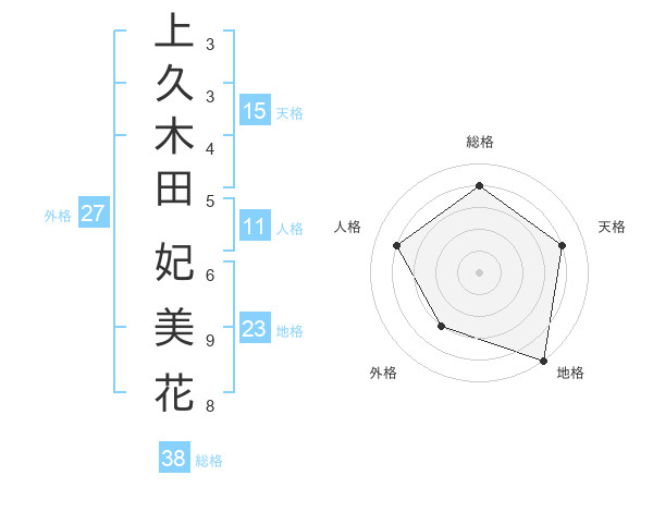 上久木田 妃美花さんを姓名の画数から五運を鑑定