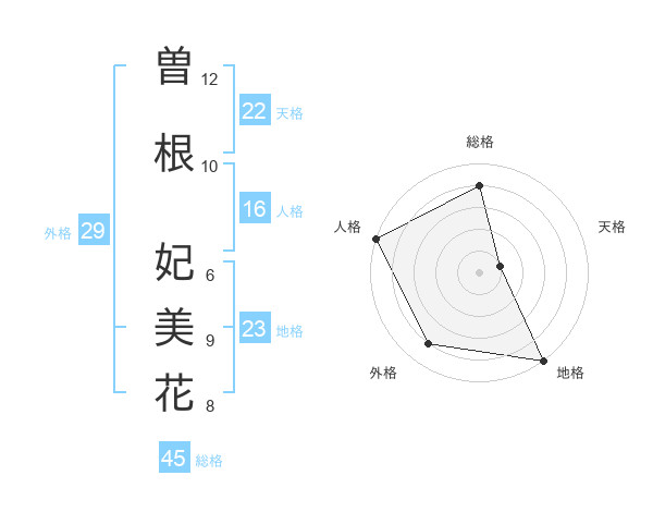 曽根 妃美花さんを姓名の画数から五運を鑑定