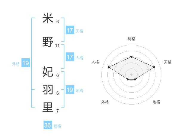 米野 妃羽里さんの天格は17画の4点!