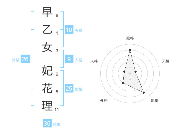 早乙女 妃花理さんを姓名の画数から五運を鑑定