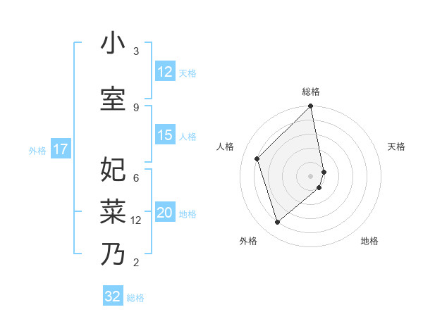 小室 妃菜乃さんを姓名の画数から五運を鑑定