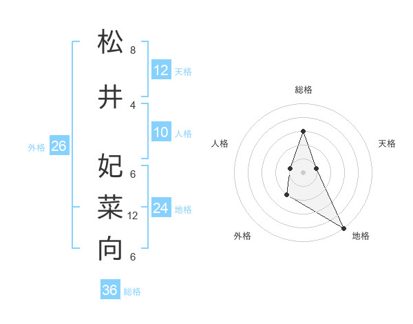 松井 妃菜向さんの天格は12画の1点