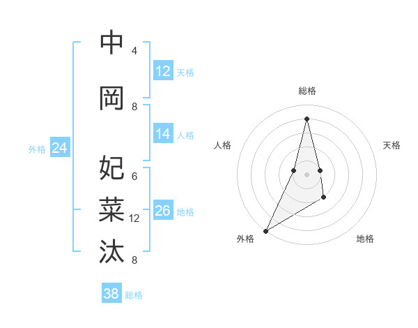 中岡 妃菜汰さんの総格は38画の4点!