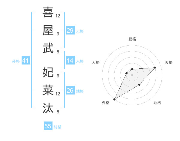 喜屋武 妃菜汰さんの外格は41画の5点!