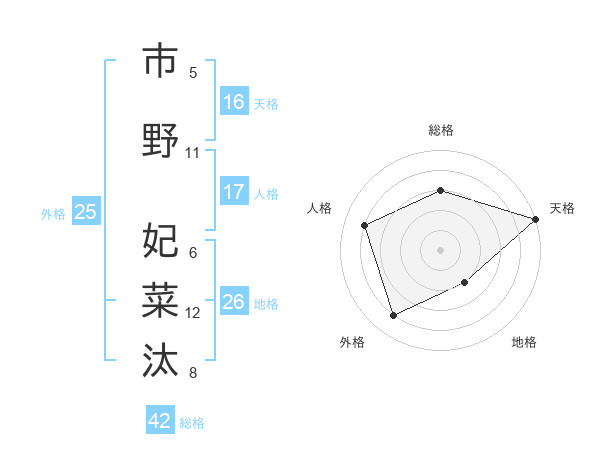市野 妃菜汰さんを姓名の画数から五運を鑑定