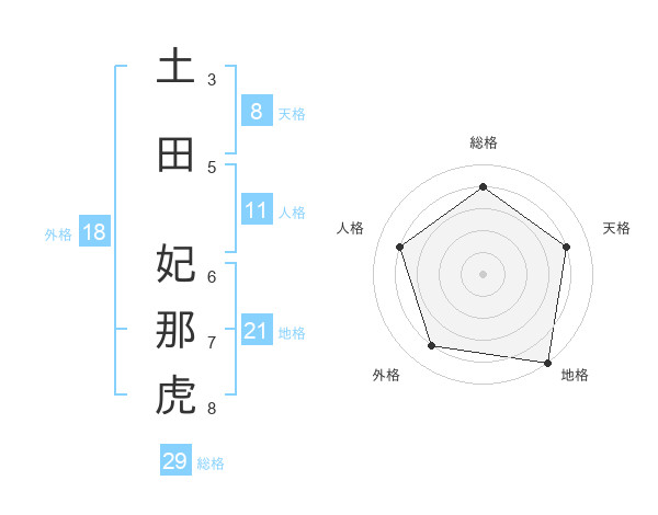 土田 妃那虎さんを姓名の画数から五運を鑑定