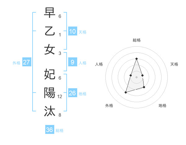 早乙女 妃陽汰さんの総格は36画の3点!