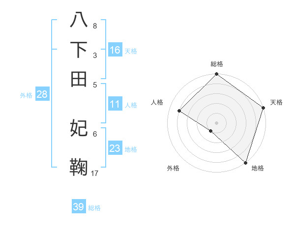 八下田 妃鞠さんを姓名の画数から五運を鑑定